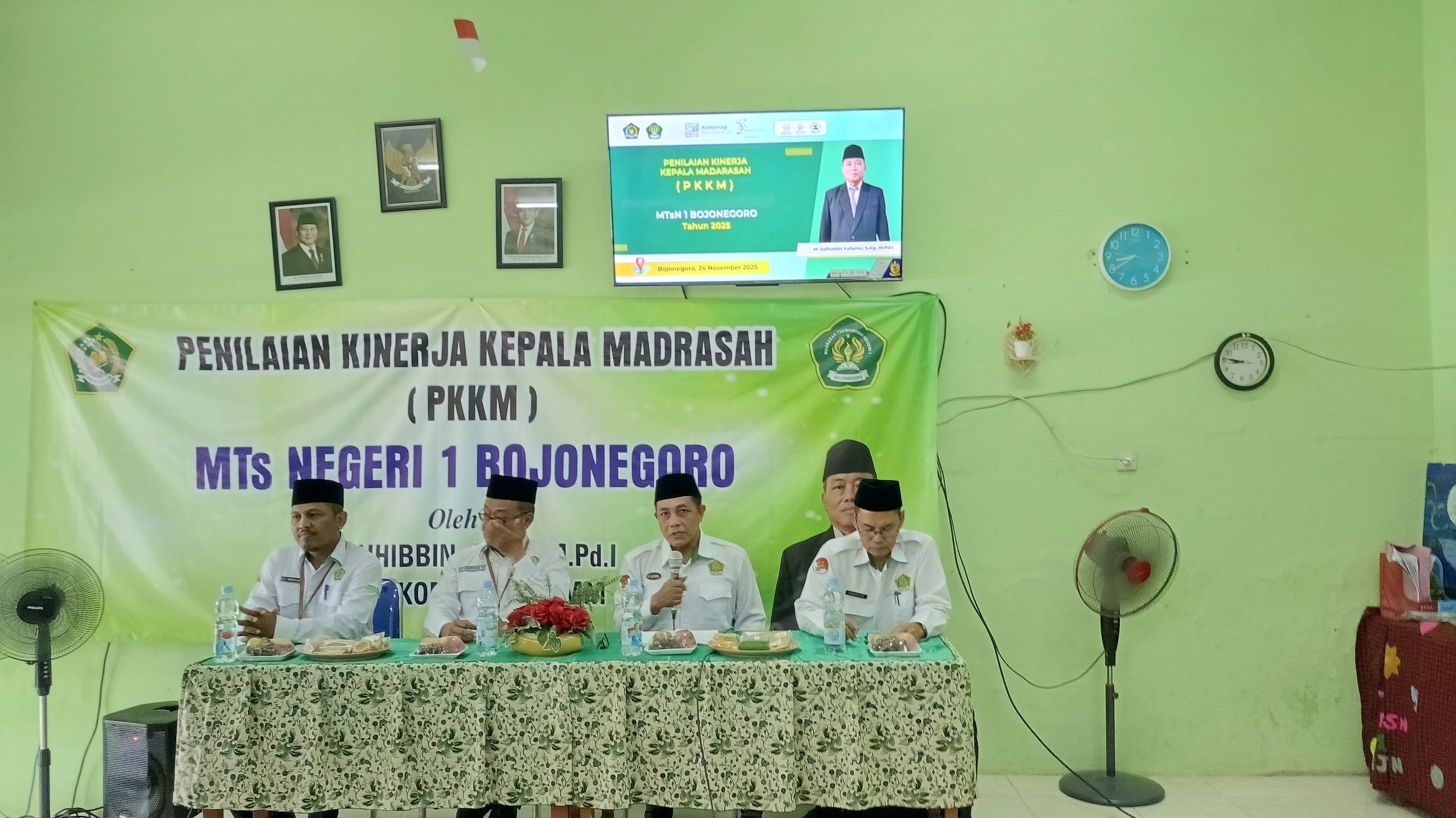 Pada hari ini, Senin, 24 November 2025 dilaksanakan kegiatan Penilaian Kinerja Kepala Madrasah (PKKM). PKKM dilaksanakan di aula MTsN 1 Bojonegoro oleh tim penilaian dari pengawas madrasah Kankemenag Kabupaten Bojonegoro.